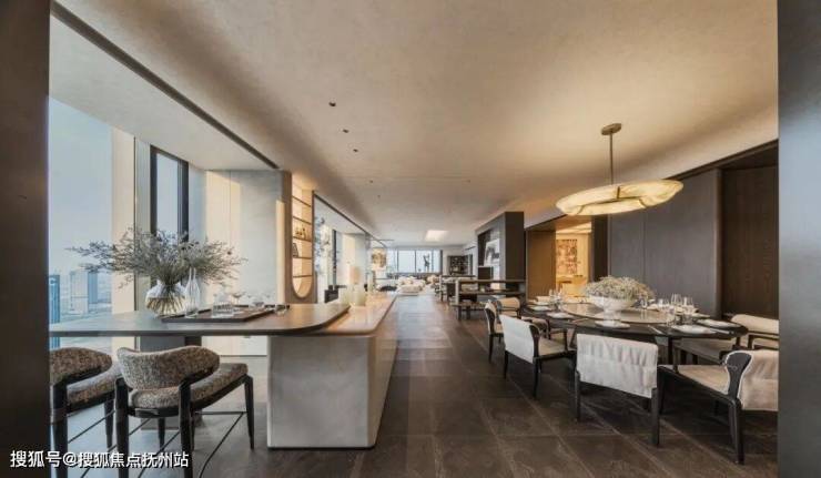 奢侈终归是不断走向内心的静谧,「归屿」真正做到了动静分离。归家映入眼帘的第一视觉便是“静谧怡然”,归家映入眼帘的第一视觉便是“静谧怡然”,270°观景的会客空间,依次排开的5个南向套间,让世纪中轴、日月同辉如同一幅恒景画映入会客厅一幅恒景画映入会客厅,心中的向往之境,也在空间的自然流动中舒展。