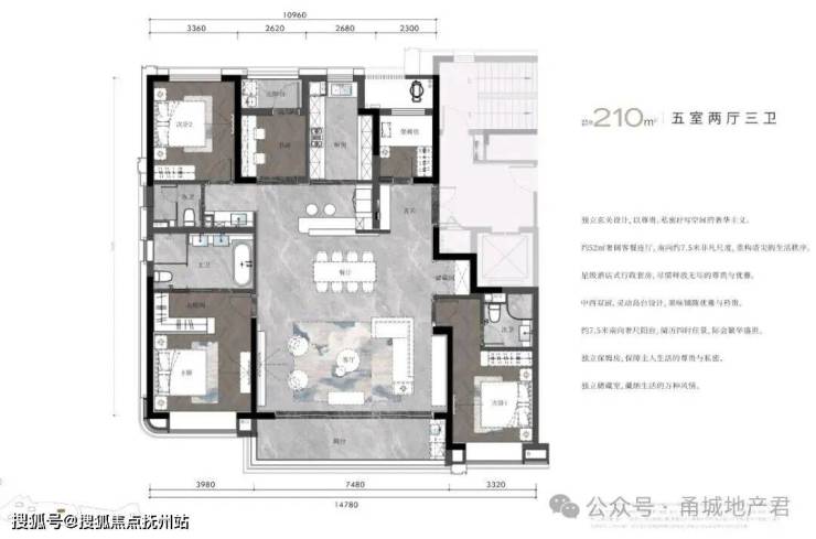 这个5个户型整体都非常相似,都是三开间朝南设计,区别在于客厅、房间的面宽在不断变大。但对于162平以上来说,这几个户型就非常一般了。