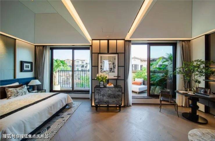 我们看到,建面约212方大户型主卧还有媲美宫殿的“穹顶式”天花板,尺度感、舒适度都让人叹为观止。
