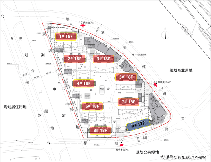 普通商品房用地,用地面积约39769㎡,容积率2.2,限高60米; 据规划显示,规划12栋可售住宅,总高17-18层,总户数约901套,容积率2.2,非人车分流,车位比约1:1.2。