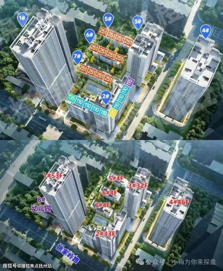 该项目商品房分布在1、2、5、6、7号楼,别墅5、6、7号楼。1栋一个单元,共53层,一层10户,2栋三个单元,一单元28层,一层4户;二单元33层,一层3户;三单元23层,一层3户,5、6、7栋均为2个单元,共4层,预计为上下叠,这也是武昌内环少见的别墅产品了,值得注意点是产品调换房位于3、4#。3号楼并未分开商品房区域分开。3栋2个单元,一单元32层,一层6户;二单元27层,一层7户。4栋2个单元,一单元46层,一层11户;二单元31层,一层3户。需要注意的是4栋是一个独立组团,与其他楼栋被规划道路隔开了。