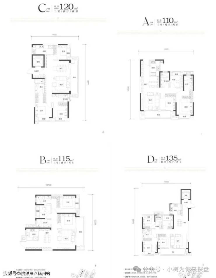 该项目户型结构面积段为110-115-135,户型图如下。