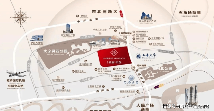 辐射商圈:人民广场商圈、静安寺商圈、徐家汇商圈、五角场商圈