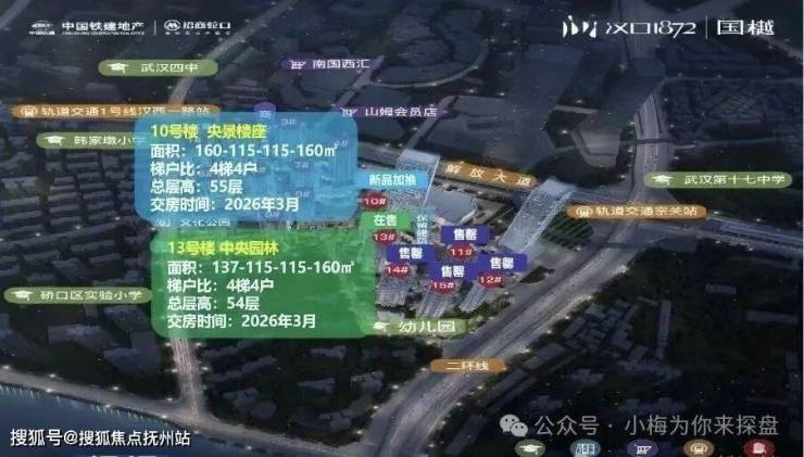 目前主推的二期地块中,除10、13号楼外,其它楼栋基本售罄。但这两栋所剩的房源也不多了啊。10号楼共55层,4梯4户,中间户为建面约115平,边户为建面约160平;13号楼共54层,4梯4户,中间户为建面约115平,边户为建面约137和建面约160平。这两栋楼都有一定的观汉江视角。