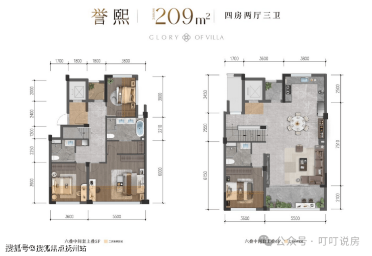 联排就2个户型,边套316㎡和中间套286㎡。