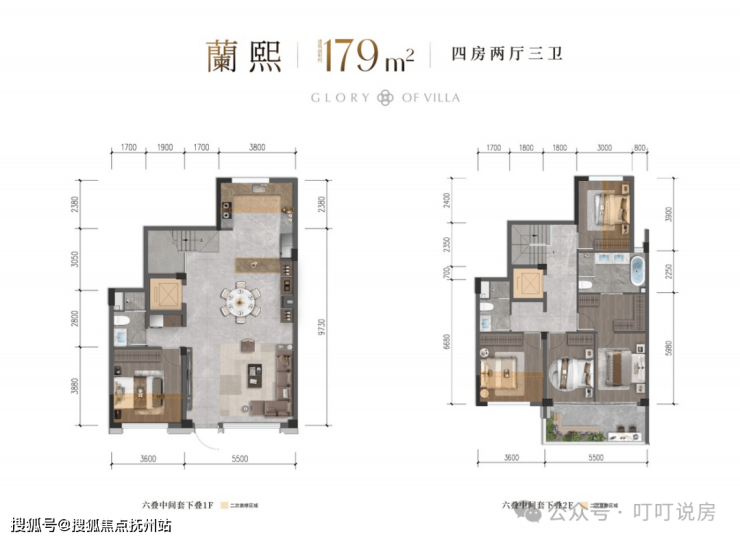 汇总下就是联排有2个户型,叠墅分上下两叠的和上中下三叠的。