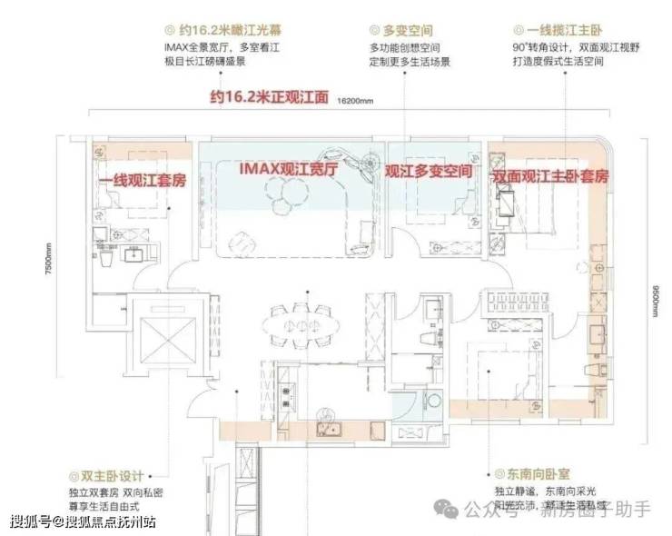 打造了约16.2米IMAX级观江面,实现了客厅+次卧+双主卧四面观江。