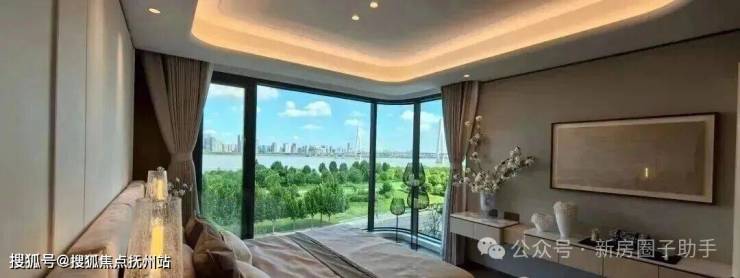 东主卧还做了弧形转角窗设计,能无遮挡270度双面观江。