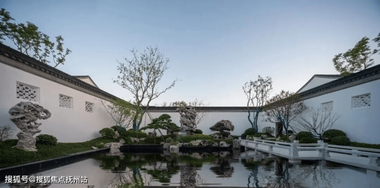 园内设置七处景观组团,以中国各大古典名园为借鉴,并融入宋代的雅致生活韵味。宋式园林更强调“精而造疏,简而意足”,擅以意山水画为蓝本、以画设景,诗词为主题。步履其中,移步换景,步步生趣。花园组团规模扩大,户户有景,各自成趣,或临廊听雨,或观亭赏风,居住更为诗意。
