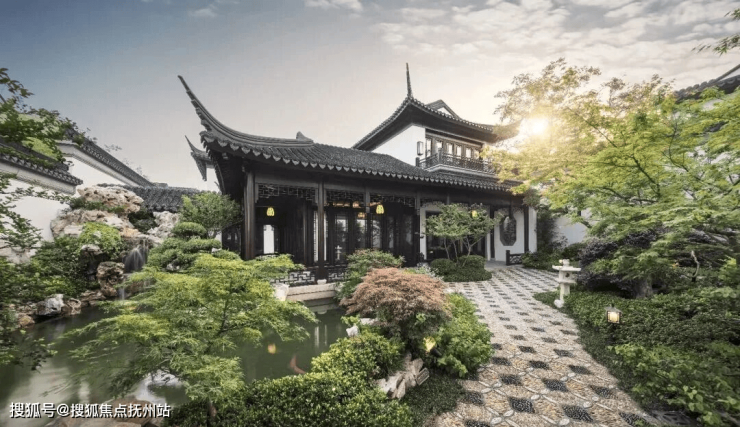 与全国在售中式作品相比,上海桃花源中轴五进制中轴园林,完整性、丰富度堪称全国之最。金瑞园坐北面南,由正南入园,中轴园林不仅设对景峰石、蜿蜒水街、太湖山石、亭台轩廊等景观节点,还以宽广山石庭园和辽阔水景,呈献潆回环抱之势,意趣无穷。另外,山林连绵、亭廊曲折,江南的温婉、隽永,尽藏其中。