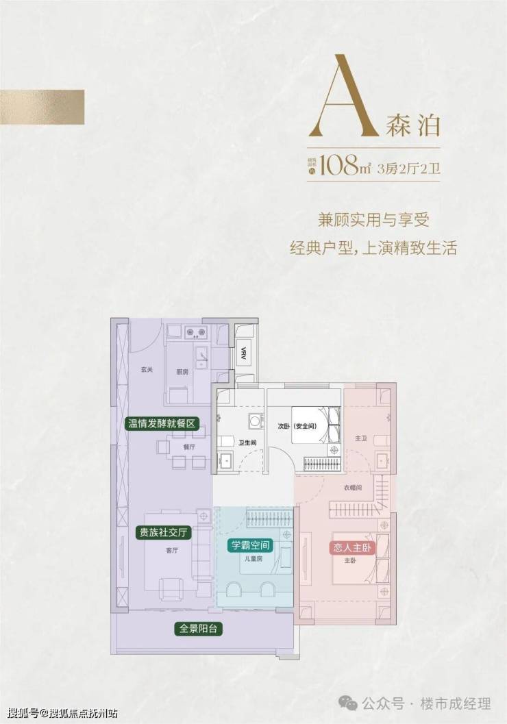 全明场域:三房朝南,约9.5m宽采光面,理想窗墙比,风光尽揽入怀