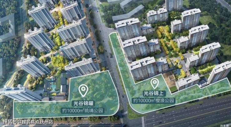 向外,万科·光谷锦曜与万科·光谷锦上隔街相望,以「红线内外一体化」的大盘规划思维,沿着两条市政道路延伸场景,约10000㎡的琉璃公园与约10000㎡的樱浪公园共同构建出约20000㎡的双社区公园体系。