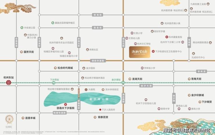 圣奥·潮映望月府所在下沙元成板块,即是:金沙湖北。提到金沙湖,大家都不陌生,这片以金沙、棕榈树为符号的杭州新一代国际湖区已然趋近整体建设的尾声。周边金沙湖大剧院、希尔顿、金沙天街等一系列配套已全部建成投入使用,一副兼具国际度假质感,又具有当代生活高阶烟火的景象已然在湖区铺陈展开。