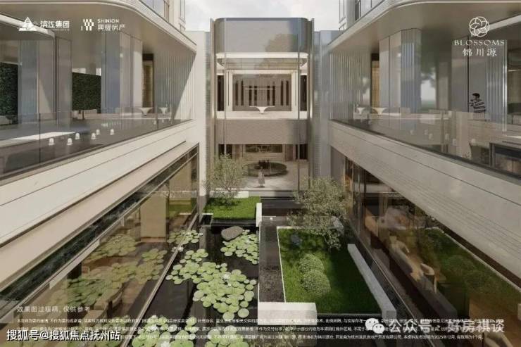 锦时club,下沉庭院休闲聚场下沉庭院空间联动架空层,营造室内恒温泳池、茶室、书咖、瑜伽、健身等功能空间,构建层峰的私享领地。
