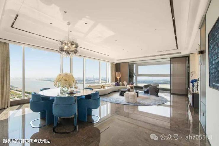 滨江·揽潮誉道以99席瞰江三百平,真正意义上的“奢侈品”。一共5幢大玻璃铝板高层,其中,东西朝向的2幢为自持商业、南北朝向的3幢为商业大户型。起步约310㎡、最大约440㎡,一共99套。虽然户数不算多,却自带约1000㎡会所,标配恒温泳池、健身房等设施。