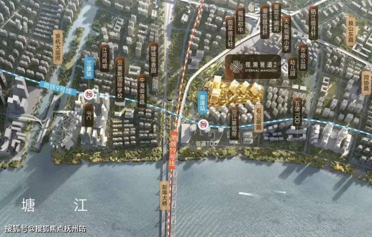但凡看得到江的房源,估计都要四千万起,主力总价八九千万甚至上亿。不过,在IFC板块,还有一个江景大户型也已拔地而起——滨江·揽潮誉道。从揽潮誉道步行到IFC大约1500米,骑上小黄车差不多8分钟。当然更推荐的方式是地铁,下楼约100米乘地铁9号线坐1站,从三堡站直接进入IFC的地下层。