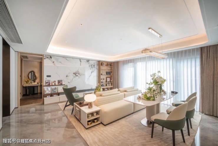 奢阔宽厅采用客餐厅一体化设计,让动区成为“家庭活力中枢”,家庭欢聚、会客、宴请都能轻松自如。