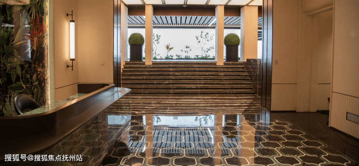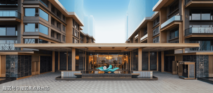 两侧矗立数十年树龄的罗汉松与丛生朴树,门厅中央仿佛漂浮于水中的艺术雕塑“樾影昆仑”,让你由门而入,便完成了都市繁华与居家静谧的悄然转场。