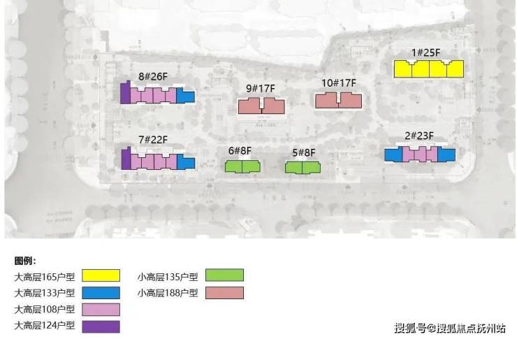 根据设计方案显示,该地块拟建2栋8F小高层住宅、6栋17-26F高层住宅以及若干社区配套用房;项目地面无车位,全人车分流,除5#、6#外,其余楼底层全架空,预计打造泛会所概念!