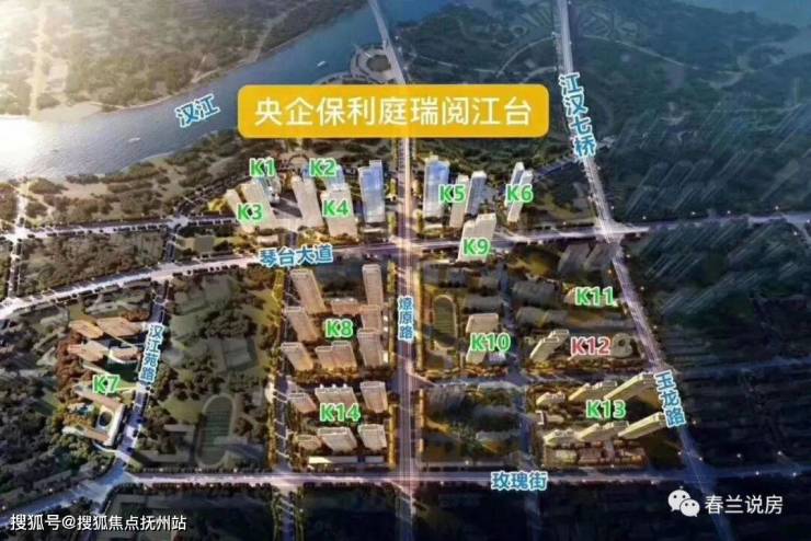 保利庭瑞阅江台总建面约137.8万方,分14个地块,总户数6759户,琴台大道以北还有部分地块未开发,以南的K7-K14已交付,目前主推琴台大道以南的K14、K8两个地块,K9、k7地块也有少量房源。