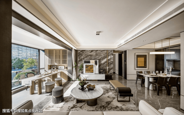 建筑风格:整体采用现代中式风格,以 “书香门第,儒雅文化” 为设计思路,采用超大窗墙比,搭配金属、玻璃、石材和铝板一体板等材料,呈现高端公建化立面形象。