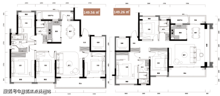项目户型为149-238㎡,均体现出日系精工品质、分区合理、空间灵活的特征。以明星户型149.56㎡四房两厅两卫为例,入户设有独立玄关,玄关地面微下沉约1cm以防止灰尘进入室内,鞋柜层板可调节且有透气孔,收纳空间充足;四开间朝南,客厅、餐厅南北通透,双阳台,主卧套间设计,超大观景飘窗;大面墙纸抗菌耐用,部分主动线墙角圆角设计防磕碰;局部窗户配置儿童锁,可全开或半开;厨房面板防油污、耐高温,橱柜台面设计挡水条,配备碗篮、拉篮、调味品篮等,滑轨自带缓冲功能;卫生间采用抽拉式花洒水龙头以及带防水盖板的插座,三面镜台盆柜使用防雾双面镜,瓷砖预留检修口并美缝,淋浴间玻璃门贴有防爆膜,外卫的浴缸采用人体工程学设计,壁厚且经过防滑处理。
