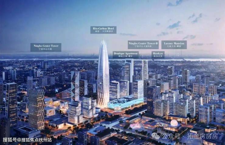 从项目自身来看,项目为近百万方TOD综合体,包含宁波中心大厦、阪急百货内地首店、浙江首家丽思卡尔顿酒店、精品公寓蘭轩、天幕大宅蘭园等五大超级业态,其中409米宁波中心大厦,不仅是在建浙江第一高楼,也将是未来10年内宁波第一高楼。