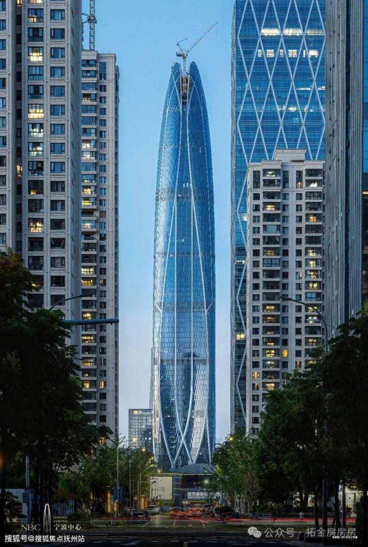 宁波中心大厦,是“ 浙江第一高楼”,位于宁波东部新城核心区,总建筑高度为409米,地下三层,地上80层,总建筑面积25万平方米。
