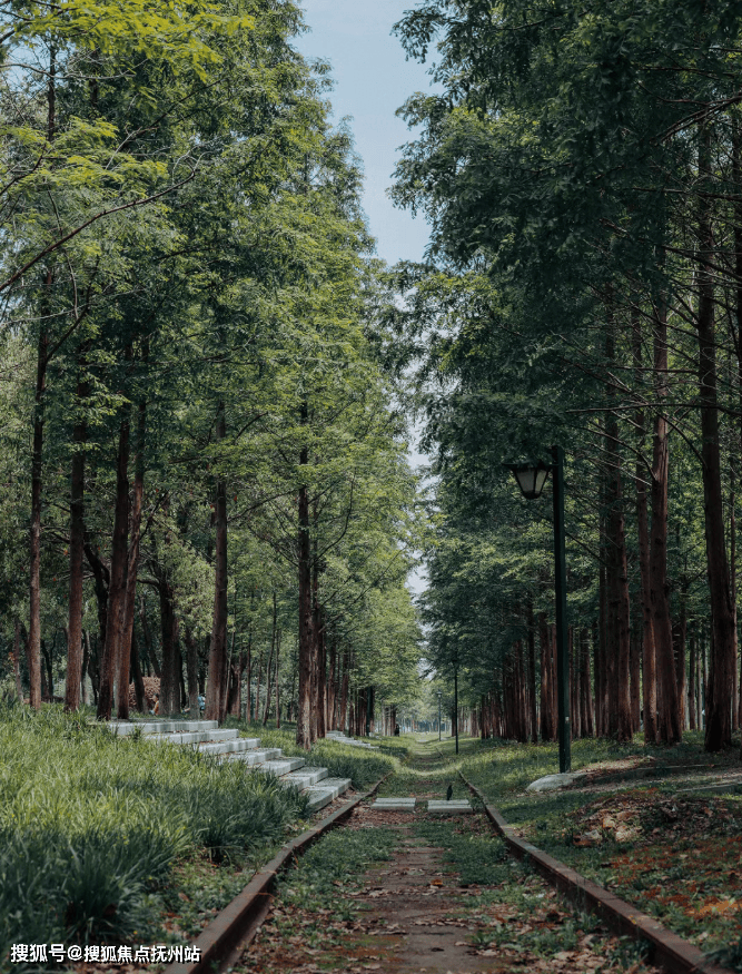 如果说树影、白塔、江水构成的是一幅清新自然的水彩画,那么江滩公园里平行的铁轨则充满了情怀意味,在这散步相当有格调