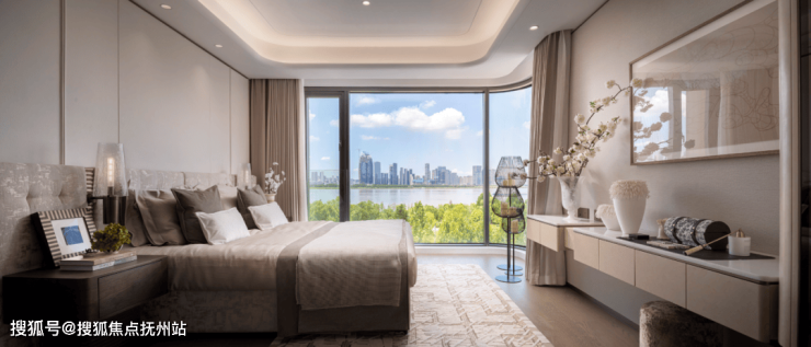 客餐厅与一旁次卧可观江,还有270°观江主卧套房,实现了“多面赏景,景随人动”