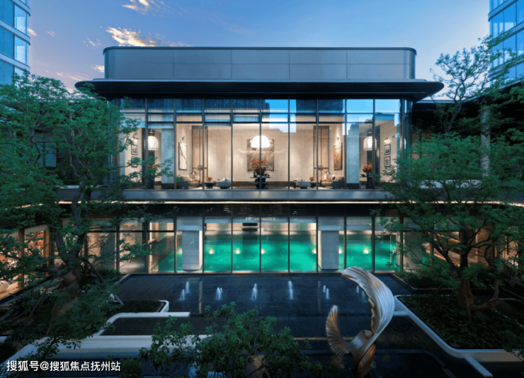 比如说大门,以黄鹤振翅为意,结合延伸景墙有约80m的惊人尺度,极目楚天,率先提升尊崇生活感