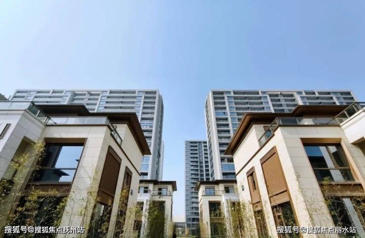 高层现代简约的建筑立面,搭配大面玻璃,颜值颇高;排屋线条简洁流畅,米、褐纯净的色彩搭配,典雅又端庄。