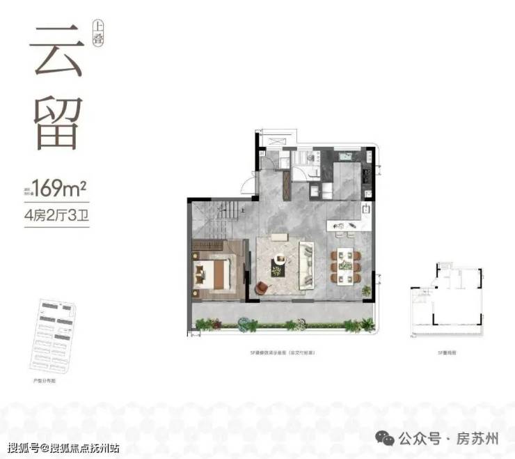 约169㎡上叠,4房3卫,带屋顶大露台。