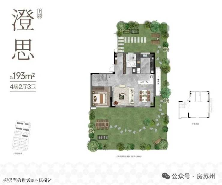 叠加约169/193㎡,均为4房3卫的舒适户型,房间全部朝南+客厅挑空。