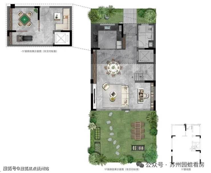 约195㎡联排,也带来了前庭后院、层层花园、无需二次改造的真顶层露台等超高附加值(约55㎡庭院+约89-98㎡拓展空间)。