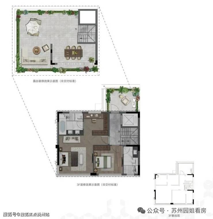 三楼是超大行政套房,并带一大露台,同时还带一个无需二次改造的顶层露台。
