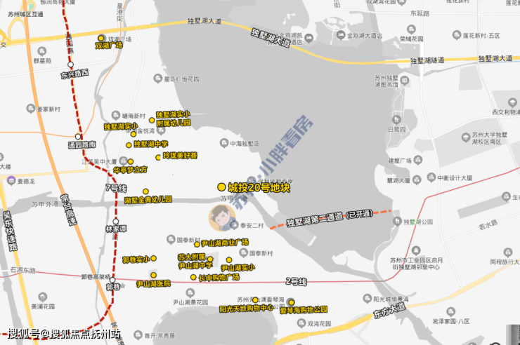 交通上面,目前还是主要依赖自驾,项目南面比较靠近独墅湖第二通道,该通道已经正式开通,能快速连接独墅湖高教区。轨道交通上面,地块距离地铁口还是有一段距离的。