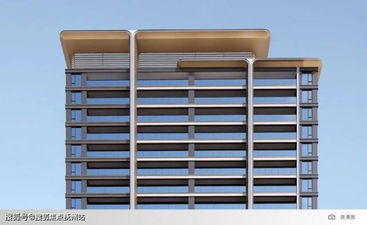 项目的外立面为类公建化立面,高窗墙比设计,金属线条勾勒的格栅造型,看上去颇具现代感,这也是目前主流四代住宅的设计风格。