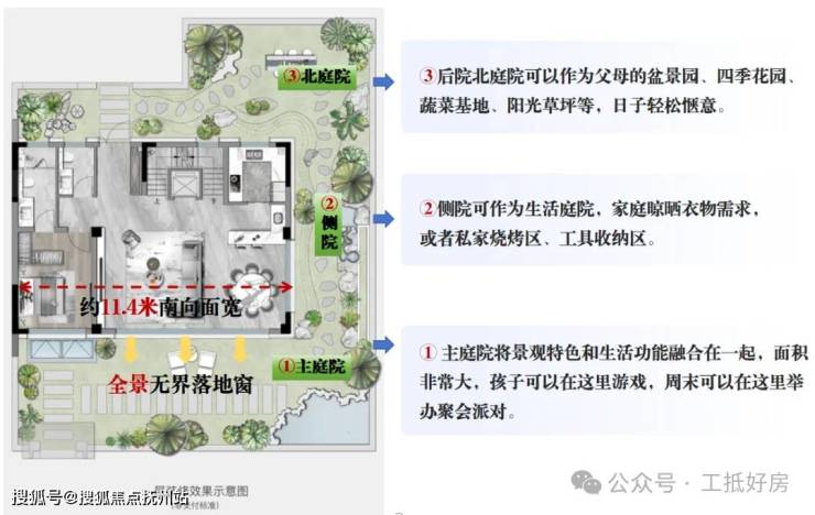 该产品通过院子、地下室、阳台与露台的多重组合,套内实际使用面积高达约650㎡!