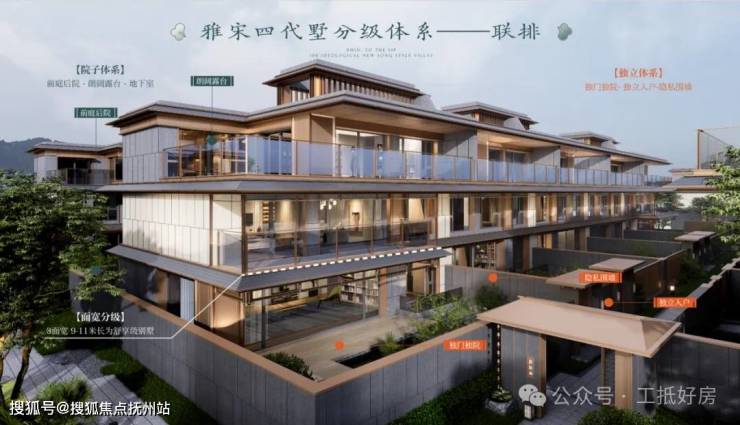 熙和·雲启观棠打造板块首座当代新宋风美学院墅,仅联排+叠加两种纯墅业态,共计约276户,容积率低至1.01。