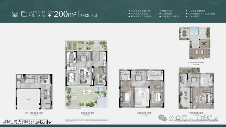 叠墅为4层“真叠拼”,上下叠均配地下室,并赠送大面积挑空: