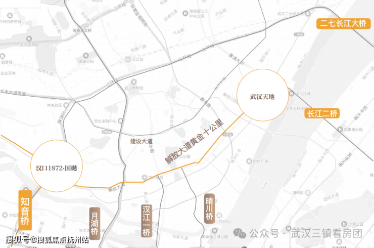 【超集核心丨武汉第一大道+汉口二环 城市主轴交汇极核】在素有武汉版“长安街”之称的解放大道与汉口二环“十字轴”上亦是湖北人的“顶流圈”,见证了武汉的发展与蝶变。东有二七滨江,西有宗关,形成“东富西贵”的格局。二七长江大桥、知音桥,分别是汉口二环的东西门户。城市主轴动脉交汇,接驳万象繁华,擎领百年汉口新繁华