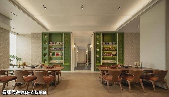 独立于生活馆主楼的茶室,位于下沉庭院侧面,空间相对私密。整体亦采用与洽谈区一致的暖白色调,而红棕色木地板又增添几分雅致与温馨。大面积落地窗的运用为宾客呈现一幅全新视角的庭院风景画。
