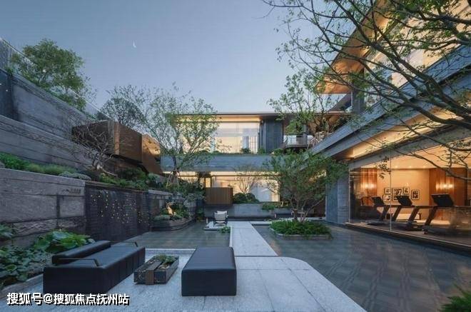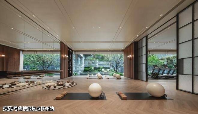 健身房、瑜伽馆、恒温泳池位于生活馆一侧地下一层,全景落地窗将下沉庭院自然景观引入室内,让生命在律动中与自然同频。