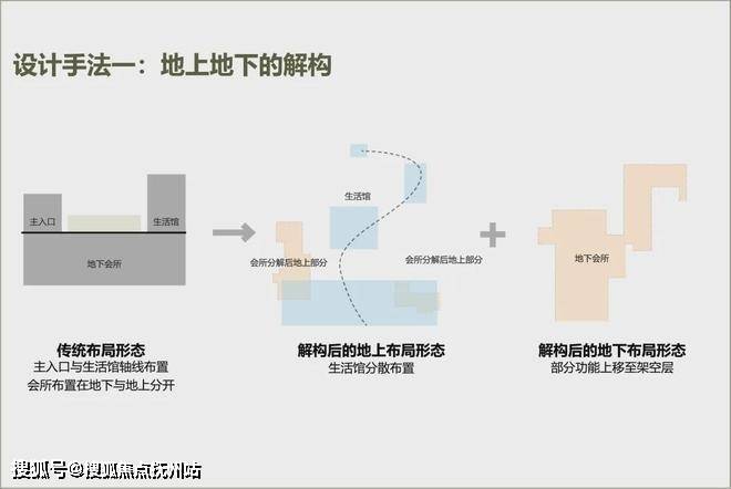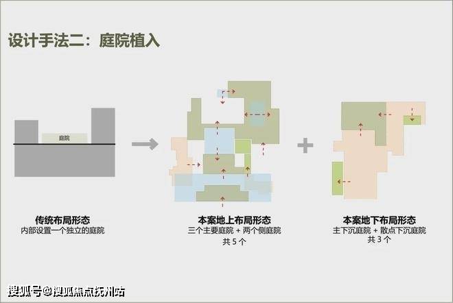 在确保主入口仪式感的同时,重新解构生活馆功能;围绕地上与地下空间流线,分别植入8个主次庭院,以提高景观的可视性;并利用曲折的游廊系统串联分散的空间,形成可望亦可游的庭院空间。通过多点体验的流动奢境,既避免空间压迫感,又实现私密性与开放性的动态平衡。