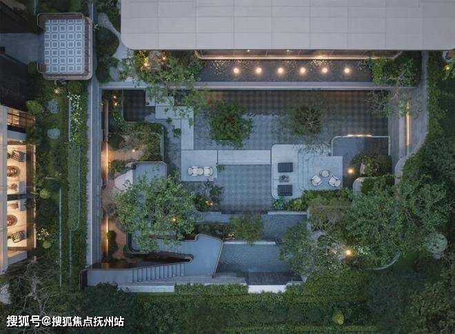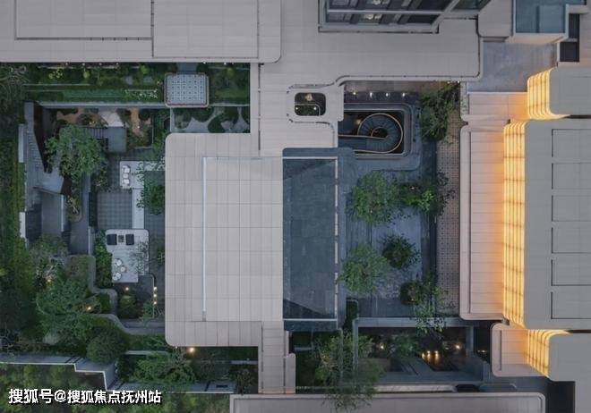 丽香庭借鉴古典入园空间序列,打造多重院落、层层递进的归家礼序。地块整体抬高约3.7米,最大高差超过7.5米的下沉庭院,以微妙的视觉层次划分功能空间,通过散点布局、小空间组织,消解空间中心;自然山水垂直铺展,形成多维“立体庭院”。游廊曲折、台地错落,行走其间,循着自由灵动的立体游园路径,忘园入画,化境归心。