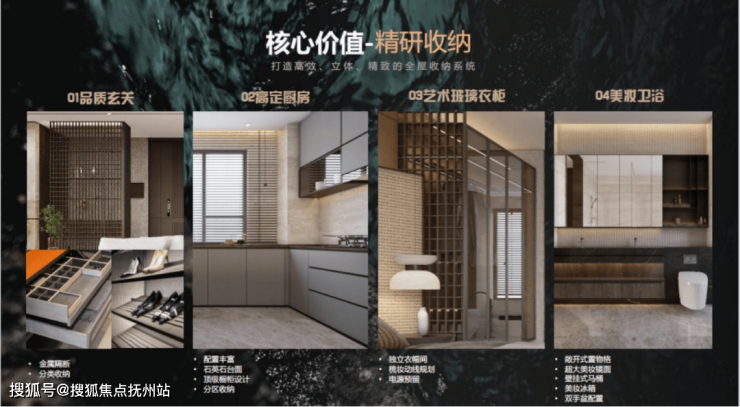 赋系的社区遵循古人追求的上风上水、高门阔府的形制要求与生活习惯。大面宽现代东方风格门头展示,在城市界面上有很好的昭示性。小区主出入口结合主体建筑立面的风格元素,在车库出入口进行呼应强化。