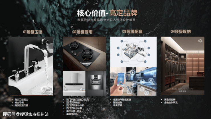在具体的景观及场景设计上,赋系依循《苏轼16乐事》为蓝本,以75%亭、林、廊、台为主的聚集空间,将人间乐事、烟火诗意搬进社区之中,让山水、园林、景观与人各得其所、各得其乐,此外,水系的大面积运用,是赋系的另一大特点。仁者乐山,智者乐水。中国人天生崇水。打造了约1600平的三重水系空间。