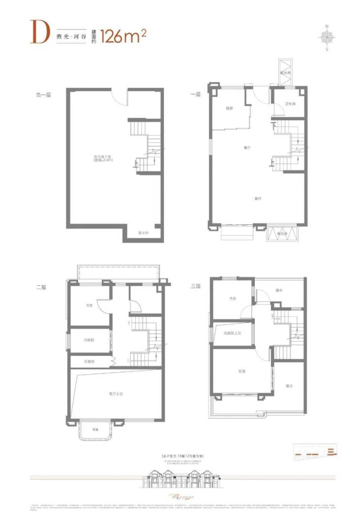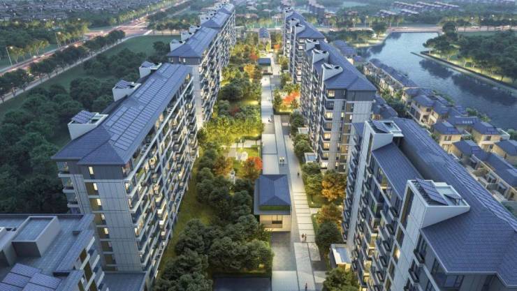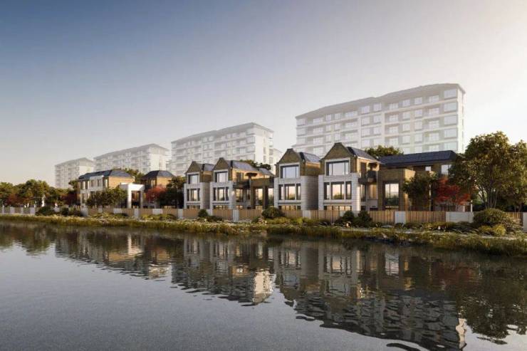 项目 容积率仅约1.5,由3层联排别墅+10层墅境平层组成,整体环河排布。