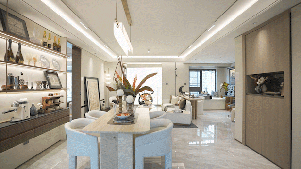 客餐厅一体化设计,整个公区视野开阔尺度阔绰,足以彰显业主的非凡气度。